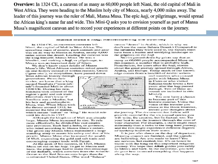 In Doc # C 26 years after Mansa passed through this town, Arab historian Ibn Battutta remarks on the economic importance of salt production for Muslim travelers to understand its integral importance for Tran-Saharan trade