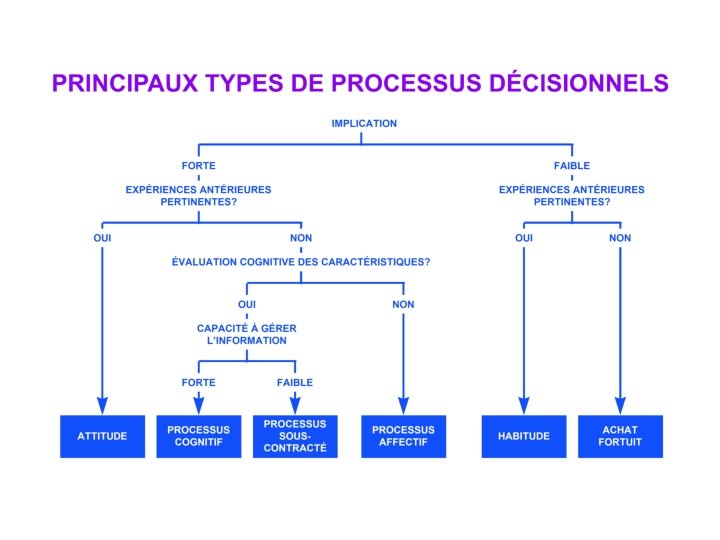 Pour comprendre comment agissent les consommateurs: deux variables capitales • Implication – qui est fonction des risques perçus • • • risque économique risque fonctionnel risque social risque psychologique risque physique Plus grand le risque, plus grande l’implication. Plus grande sera l’implication, plus complexe sera le processus décisionnel .