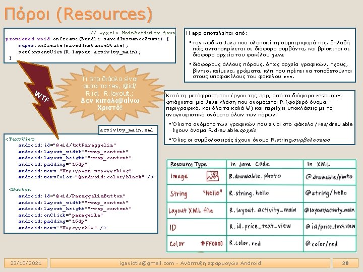 Common Android Views Cheat Sheet http: //labs. udacity. com/images/Common-Android-Views-Cheat-Sheet. pdf 23/10/2021 igaviotis@gmail. com - Ανάπτυξη εφαρμογών Android 6