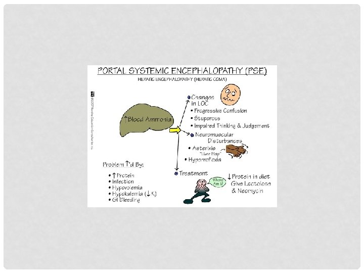 COMMON COMPLICATIONS OF LIVER DISORDERS • • • Acute liver failure Portal hypertension Ascites Hepatic encephalopathy Jaundice Hepatorenal syndrome Copyright © 2014, 2010, 2006 by Mosby, Inc. , an imprint of Elsevier Inc. 1
