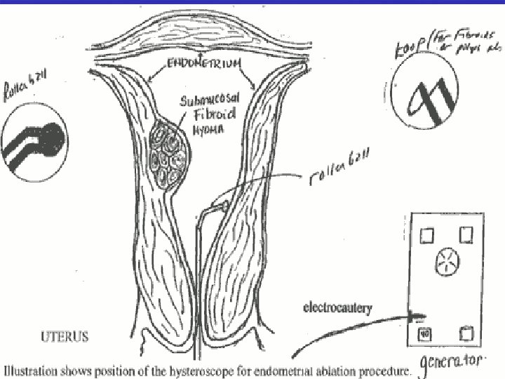 roller ball electro diathermy. endometrial loop resection using electro diathermy.