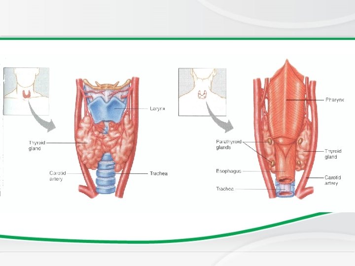PARATHYROID GLAND • Very small (less than 5 mm). • Called parathyroid glands because of their position on posterior margins outer surface of thyroid gland. Development: Like thyroid gland, develop from early pharynx