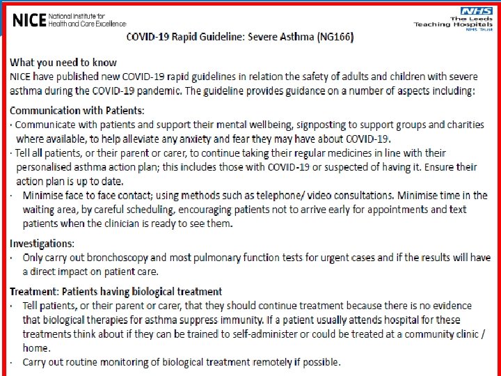 If you’re worried or want more information re asthma during this time look at Asthma UK website https: //www. asthma. org. uk/advice/triggers/coronavirus-covid-19/