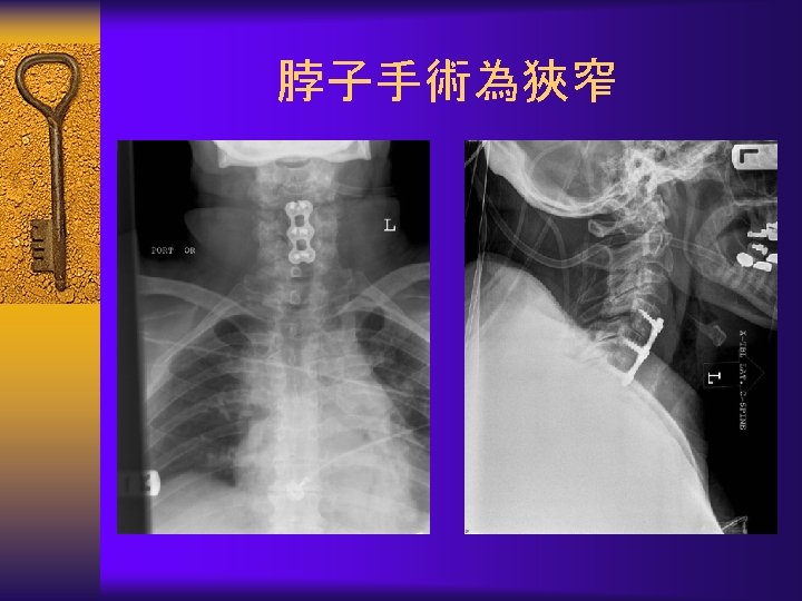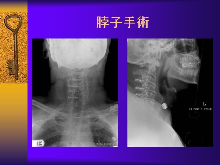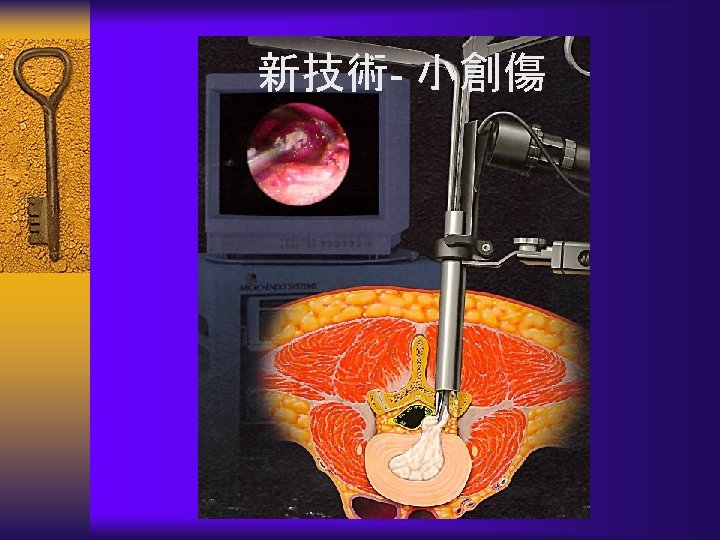 Non-Surgical Treatment 沒有手術治療 (80 -90% of patient) ¨ Bed rest (1 -2 days) ¨ Traction(at least 25% of body weight) ¨ Acupuncture/trigger point injection ¨ TENS ¨ Corset/Braces ¨ Manipulation ¨ Medication – NSAID – Muscle relaxant