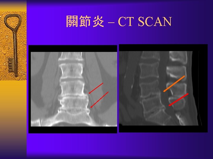 Clinical Presentation of Facets Arthropathy 關節炎 • Morning Stiffness. • Lower back Pain without radiculopathy • Pain improves with activities during the day, returns in the evening. • More pain with extension than flexion • Aggravated by weather or humidity change