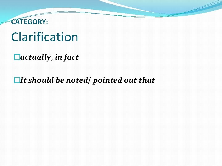 CATEGORY: Clarification �actually, in fact �It should be noted/ pointed out that