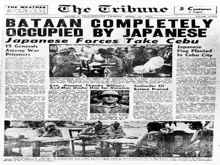 JAPANESE MILITARY ADMINSITRATION COLLABORATION OF FILIPINOS BATTLE IN BATAAN AND CORREGIDOR MARTIAL LAW Curfews & blackouts