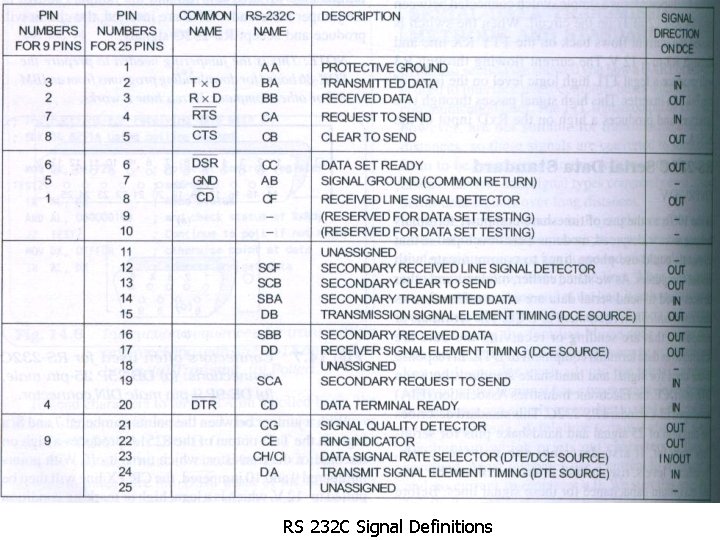 Connecting RS-232 C Equipment n Null Modems: n n A Null Modem is used to connect two DTE's together. Data transmitted from the first computer must be received by the second in which Tx. D is connected to Rx. D and Viceversa. DTR’ of one computer is connected to DSR’ of second one and vice-versa. Since both are in same speed, RTS’ of first is connected to CTS’ of second and vice-versa.