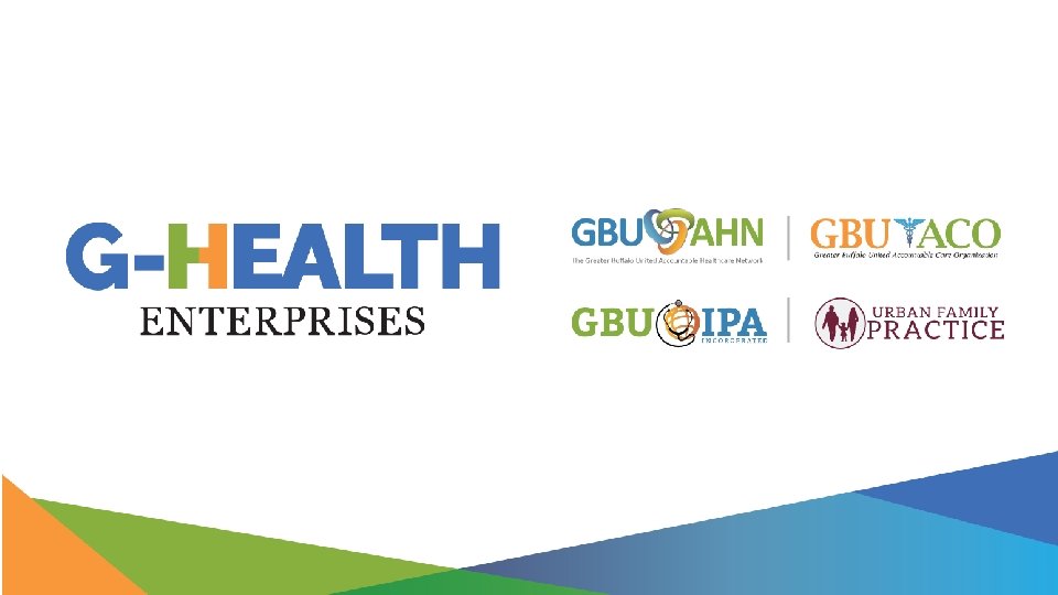 G-Health Leadership INFORMATICS • Donald Stroka, Program Analyst • Roan Reynolds, CIO • Louis Garcia, Director of IT RESOURCE SUPPORT • Ivan Agosto, COO • Gabrielle Diaz, Director – Outreach and Engagement • Yaritza De. Jesus, Director – Transportation POPULATION HEALTH • Nicole Pearcy, Director – VBP • Chelsea Adamski, Asst. Director – VBP • Adrianne Lawal, Office Manager – UFP TELETRIAGE • Chelsea Adamski, Asst. Director – VBP • Levenia Baker, Pharmacist • Nicole Pearcy, Director – VBP TESTING • Dr. Chet Fox, CMO • Levenia Baker, Pharmacist • Terrance Gaiter, Office Manager – UFP TREATMENT • Dr. Raul Vazquez, CEO • Dr. Chet Fox, CMO • Levenia Baker, Pharmacist