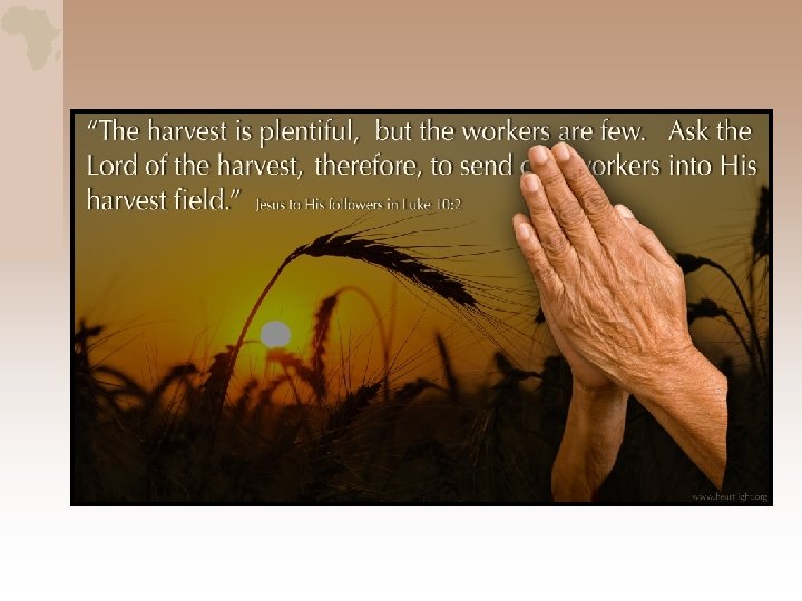 • Jesus went throughout all the towns and villages, teaching in their synagogues, and preaching the gospel of the kingdom, and healing every disease and all sickness. • When he saw the crowds he was moved with compassion for them, because they were harassed and helpless life sheep without a shepherd. • Then he said to his disciples, “The harvest indeed is plentiful but the workers few. • Ask the Lord of the harvest, therefore to send out workers into his harvest field. ” • Mt 9: 35 -38