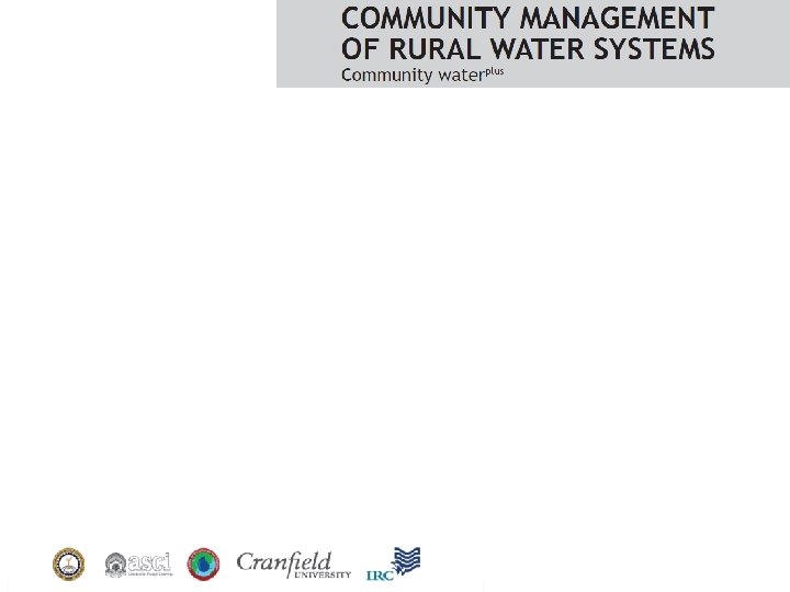• What added value from Community Water plus ? • Quantifying the ‘Plus’ in resource terms – financial and quantity/quality person hours – what it takes to deliver and sustain ‘good enough’ community involvement and the water services they can deliver • Partnering does not stop with completion of new systems • Understanding what this means for the ‘hard to reach’ final 15% whilst sustaining the 85% as they continue the transition to ‘conventional’ water supply…. • Sharing this knowledge with low-income countries (consultant & academic opportunities) who are significantly behind on the transition curve …. .