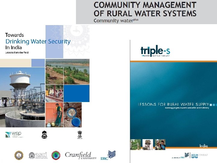 Grateful to Steering Committee • Mr. Sujoy Mojumdar, Director (RWS) • Dr. James A. J. , (Viju), Independent Consultant • Dr. Manish Kumar , WSP-SA • Mr. Arumugam Kalimuthu, Country Director, Water for People • Mr. Hemant Kumar Joshi, CCDU, Rajasthan • Mr. R. P. Kulkarni, Chief Engineer, K RW S & S • Mr. Ravi Narayan, Advisor to Arghyam • Mr. Joe Medith, Gramvikas