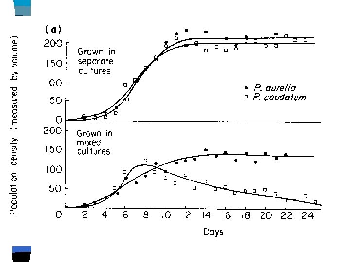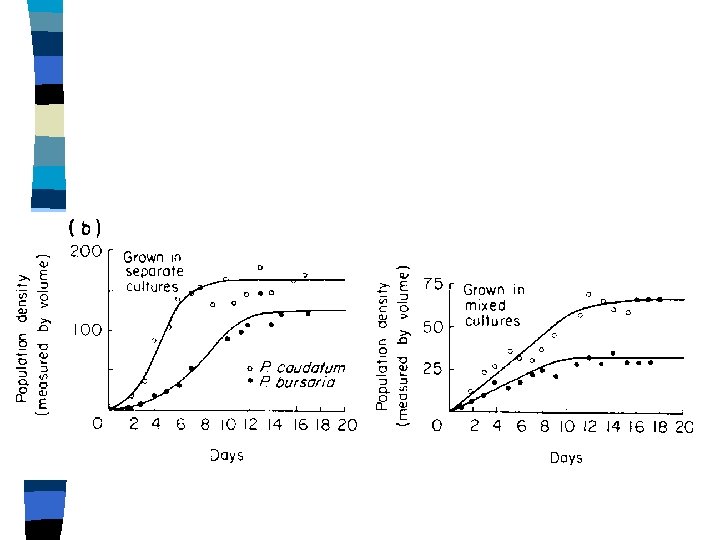 Competition Theory n n In a biological sense, the first real demonstration of competition theory was performed by Gause in the 1930’s. Gause used 2 species of Paramecium. – When the first species was grown alone in a petri dish, it showed logistic population growth. – When the second species was grown alone in a petri dish, it too showed logistic population growth.