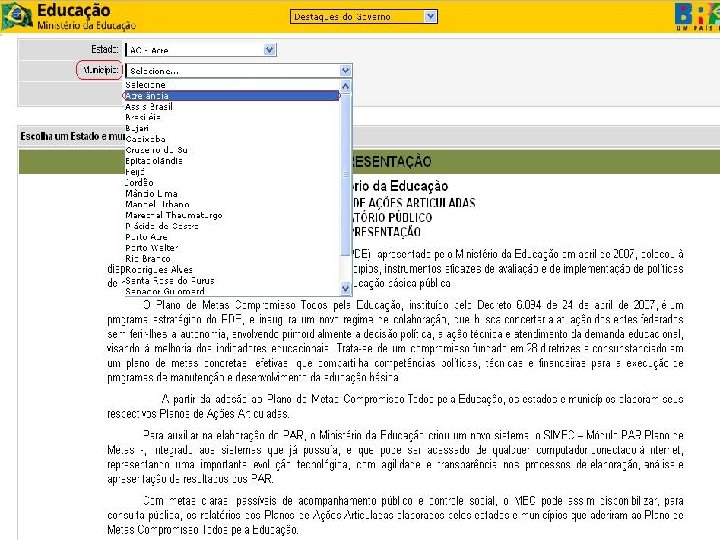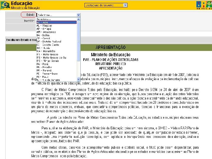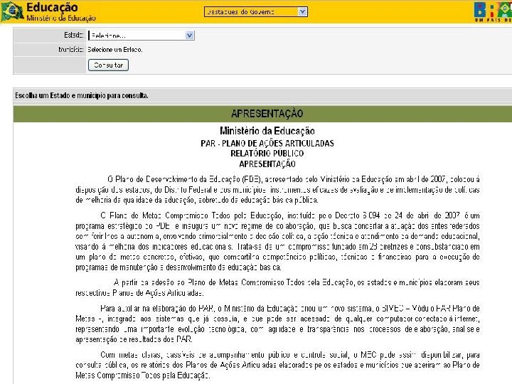 2. Você será encaminhado para a página de apresentação do PAR – Plano de Ações Articuladas no site do MEC
