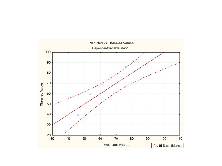 ANOVA Fonte de variação Soma quadrática Graus de liberdade Média quadrática Regressão 8. 871, 61 2 4. 435, 80 Resíduos 58, 40 15 3, 89 Falta de ajuste 13, 39 6 2, 23 Erro Puro 45, 00 9 5, 00 Total 8. 930 17
