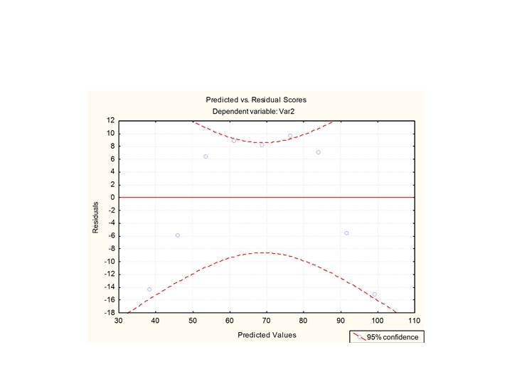 • • • Para o modelo linear temos: MQR/MQr =29, 14 Valor de F 1, 7 =5, 59 (nível de 95%) Isso indicaria uma regressão significativa! A percentagem de variação explicada pelo modelo é de 80, 63%. • Entretanto só poderíamos usar F se não houvesse anormalidade na distribuição de resíduos.