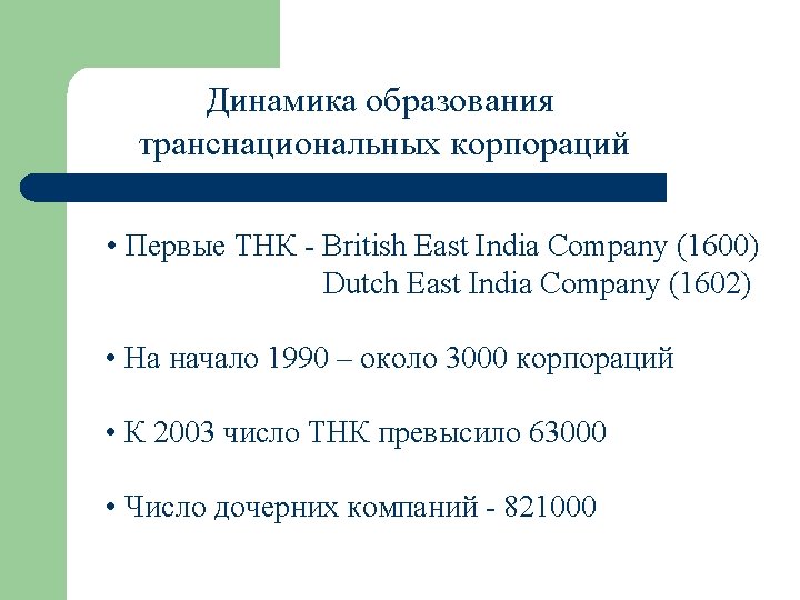 COMPANY REVENUES millions 1996 Total assets Foreign assets Slides: 13 Download presentation Десять ведущих ТНК COMPANY REVENUES$ millions 1996 Total assets Foreign assets General Motors Corporation 168, 369 54. 1 228. 0 Ford Motor Company 146, 991 69. 2 238. 5 Mitsui & Co. , Ltd. 144, 943 16, 60 68. 5 Mitsubishi Corporation 140, 204 - 79. 3 Itochu Corporation 135, 542 15, 10 72. 0 Royal Dutch/Shell Group 128, 174 79. 7 117. 6 Marubeni Corporation 124, 027 13. 0 24, 40 Exxon Corporation 119, 434 66. 7 91. 3 Sumitomo Corporation 119, 281 12. 0 50. 7 Toyota Motor Corporation 108, 702 36. 0 118. 2
