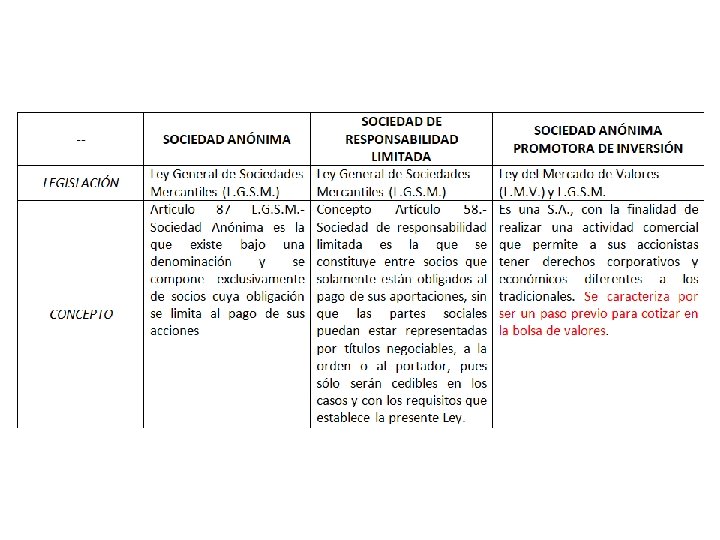 • Objeto social…. arts. 10 y 4 LGSM • Los tipos de acciones que hay y explicar en qué consisten y casos que se puede prever. 91 y 198.