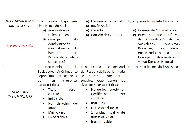 Las diferencias presumidas HOY NO APLICAN AL 100%. Subsisten algunas pequeñas diferencias: 1. - Administración (Consejo-Administrador) vs (Consejo y Director)