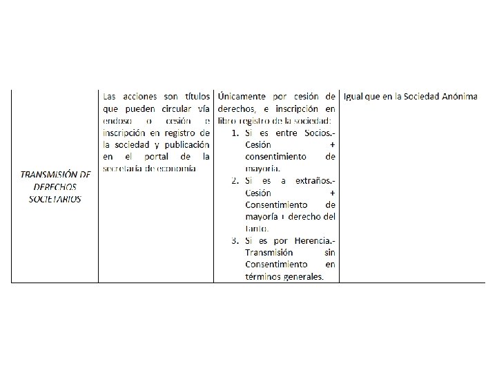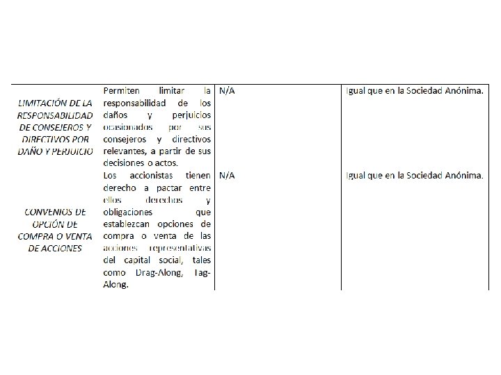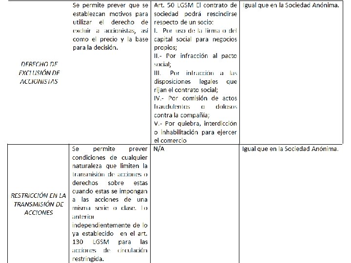 • Derecho del tanto para enajenar partes sociales. • No hay Vigilancia – comisario -obligatoriarelleno • No más de 50 socios.