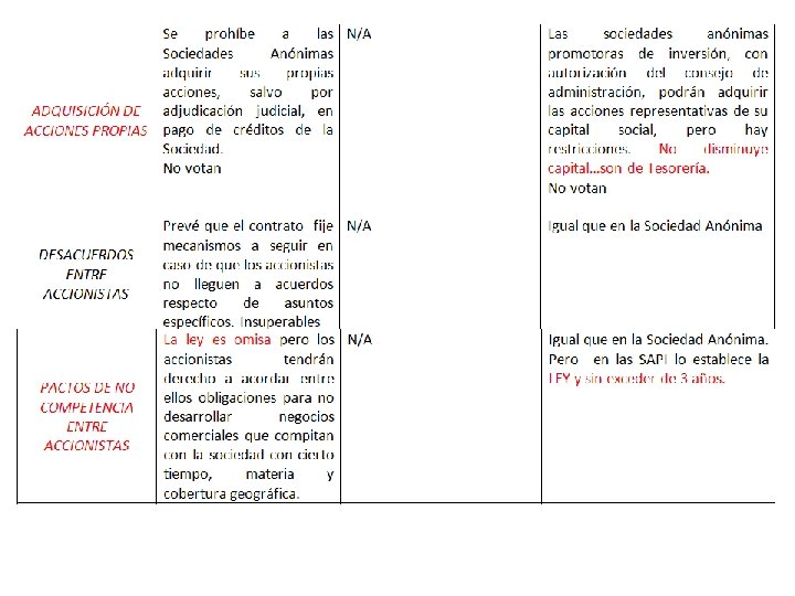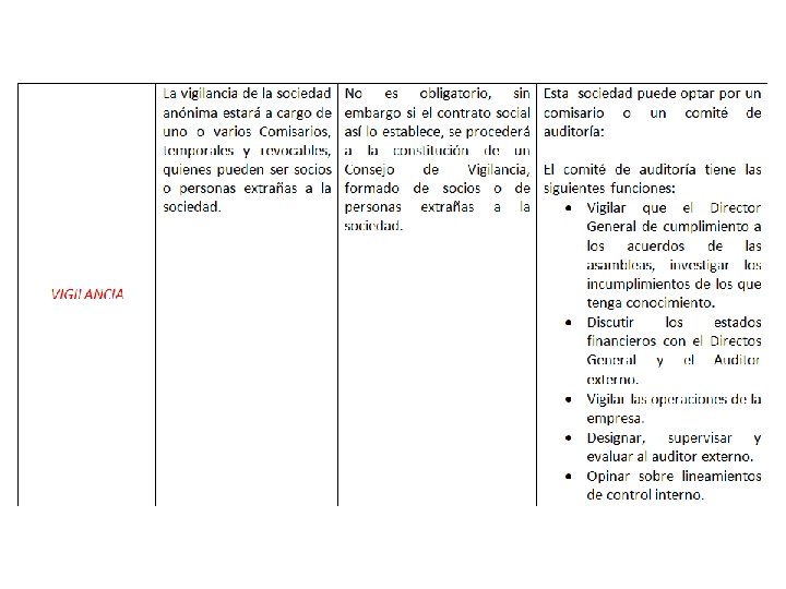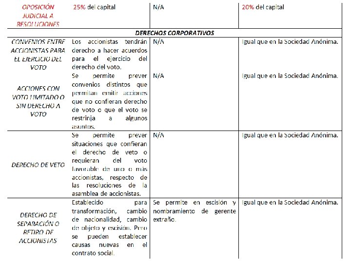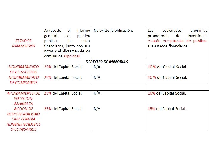 2. - Vigilancia (comisario) vs (Auditor externo o comité de auditores) 3. - Minorías % 4. - Compra de acciones propias (ninguna vota)