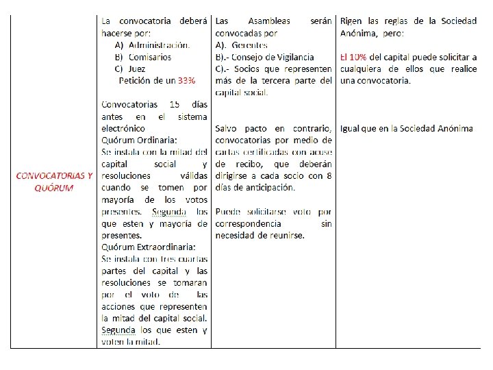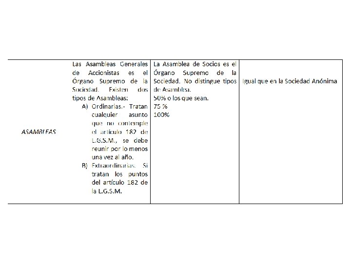 SOCIEDAD DE RESPONSABILIDAD LIMITADA • No hay tipos de Asambleas. • No hay títulos para partes sociales • No son embargables