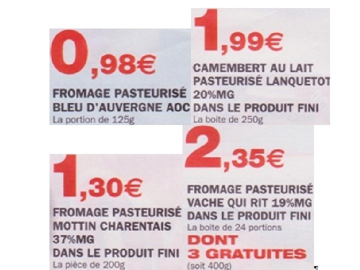 • Quel est le rapport de prix entre les deux produits ? • Expliquer 0. 98 €/p et 1. 49 €/p