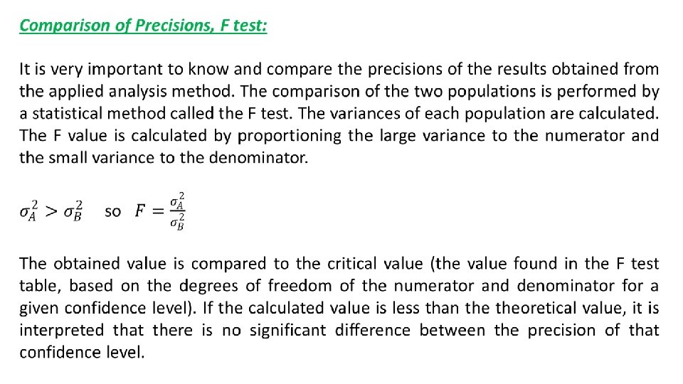 Variance Analysis The comparison of means from the binary population was performed by applying t-test as previously described. The t-test is no longer performed when the number of populations increases, ie when there are 3 or more. Instead, multiple variance analysis, known as ANOVA, is used for analysis of variance. Typical examples of ANOVA testing are as follows: Whethere is a difference between the means of the analysis found by 5 different analysts from the sample, Whethere is a difference between the analysis results obtained at four different temperatures, Whethere is a difference between the results obtained by 3 different analysis methods of the sample, Whethere is a difference between the results obtained at different p. H 4.