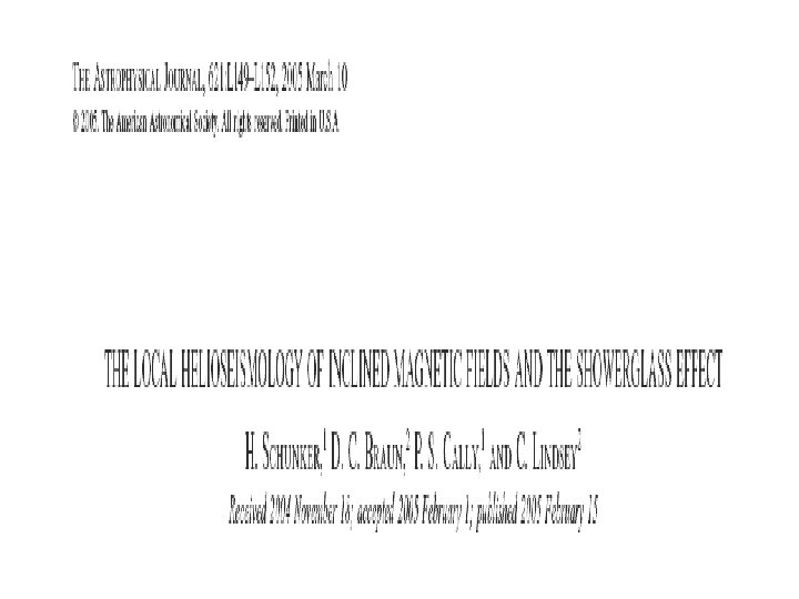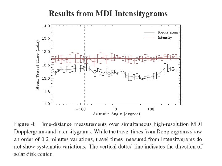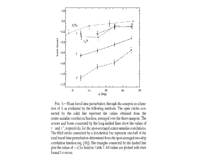Time-Distance Measurements and Showerglass Effect Outgoing and ingoing travel times (relative to the quiet Sun) as functions of magnetic field strength. The left panel shows results obtained with an annulus range of 3. 7 -8. 7 Mm, and the right panel shows measurements with an annulus range of 14. 5 -19. 5 Mm. Note the different vertical scale in the two panels, and especially, it is negative upward in the right panel.