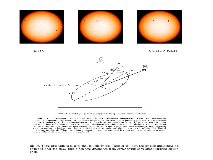 Inclined Magnetic Field Effect June 3, 2000 June 7, 2000 June 10, 2000 This figure shows the location of the studied sunspot on three different dates. Magnetic field line inclination angles are different when the sunspot is at different location on the solar disk. We measure wave travel times (or phase shifts) inside sunspot penumbra when it is at the different locations of the solar disk, in order to see whether the projection of magnetic field has any significant effects for these measurements.