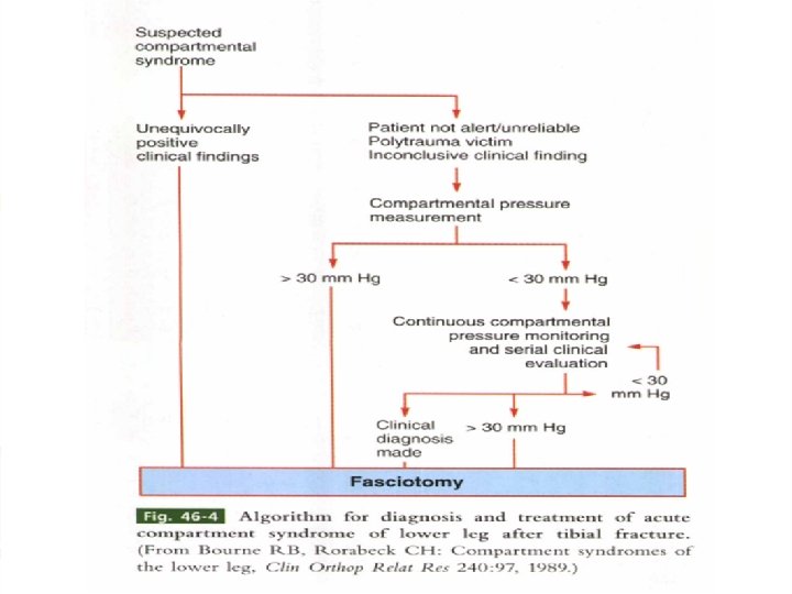 Treatment: The single most effective treatment for acute compartment syndrome is: Fasciotomy ( single/ double incision)