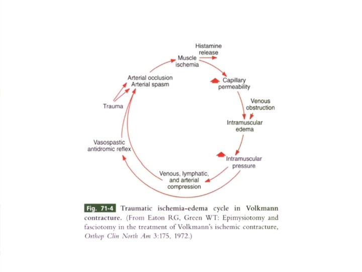 Volkmann`s ischemic contracture Is the end stage of neglected acute compartment syndrom with irreversible muscle necrosis leading to ischemic contractures.