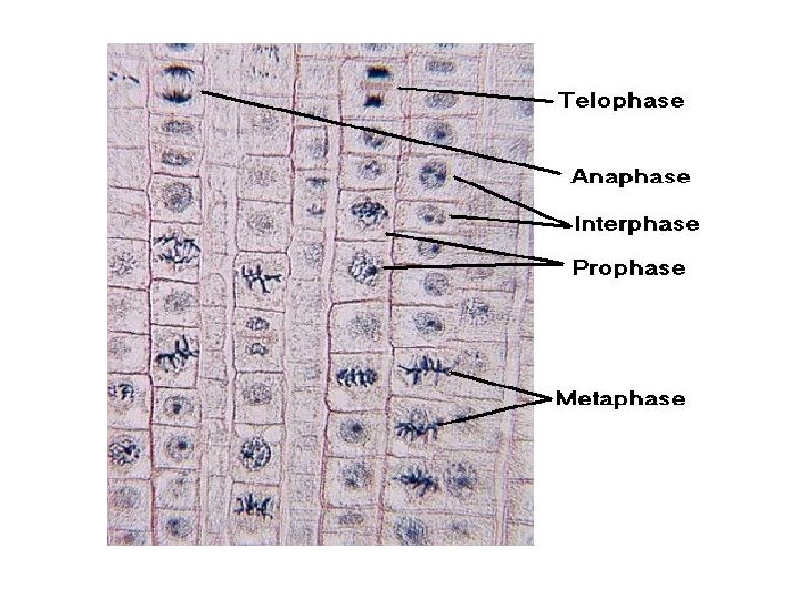 MITOSIS – ONION ROOT TIP Interphase Prophase Early Anaphase Later Prophase Telophase Metaphase Later Telophase