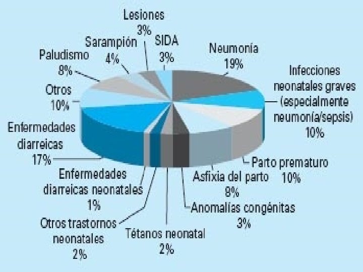 Estado Mundial de la Infancia 2009. • Cuánto vale una vida? “ Más de 10 millones de muertes infantiles sufre el mundo cada año. • Alrededor del 20% de todas las defunciones de niños menores de cinco años, son producidas por infecciones graves. • Una proporción significativa son por neumonía y sepsis. Cerca de 2 millones de < de 5 años mueren anualmente de neumonía (uno de cinco fallecimientos a escala mundial), y hasta 1 millón más mueren por infecciones graves, incluida la neumonía, durante el período neonatal.
