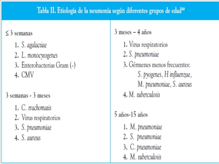 Clasificación y frecuencia. • La NAC se clasifica en tres síndromes: Ø NAC típica o bacteriana, Ø NAC atípica (virus o bacterias atípicas) Ø NAC clasificable (no cumplen criterios). • La NAC es una de las infecciones frecuentes de la infancia, observándose entre 1000 y 4000 casos/100. 000 niños/año. Afecta más a niños entre 1 y 5 años. Su mortalidad es baja en países desarrollados, aunque asocia alta morbilidad y hospitalización en los afectados.