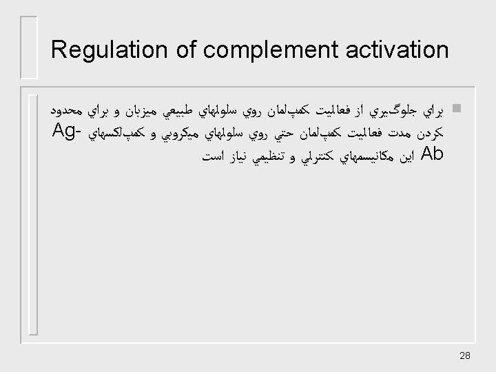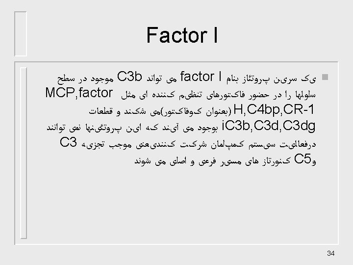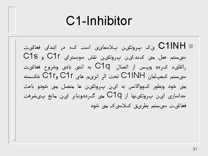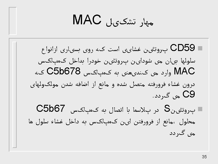 ﺍﻧﻮﺍﻉ ﻣﻮﻟکﻮﻟﻬﺎی کﻨﺘﺮﻟی n n n n n C 1 INH Membrane cofacto protein(MCP) Complement receptor-1(CR-1) Decay accelerating factor(DAF) factor H C 4 -binding protein(C 4 bp) CD 59 Factor I S-protein