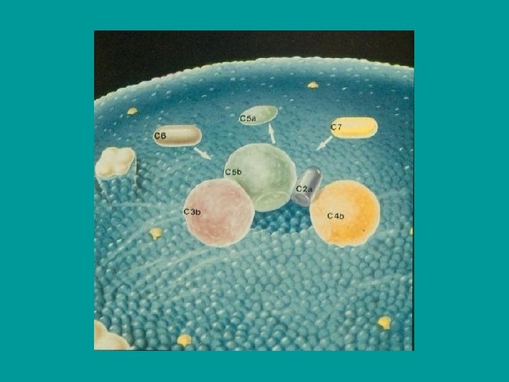 § factor I, MCP (membrane cofactor protein), CR 1, factor H – C 3 b cleavage § CD 59 (protectin) - prevents the polymerization of C 9 § factor S (vitronectin) – inhibits complex C 5 b. C 6 § inactivator of anafylatoxins - inactivates anafylatoxins (C 3 a, C 4 a, C 5 a)