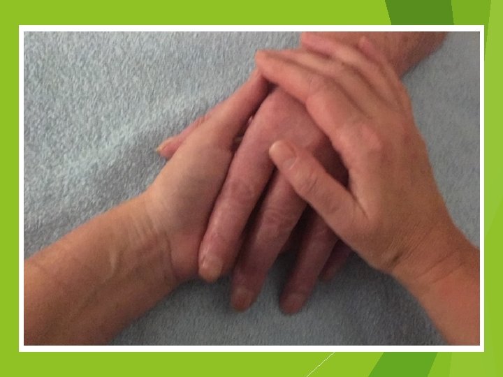 Innerlijke attitude Positie t. o. v. Reguliere zorg Complementaire interventies Innerlijke attitude Empathie (Inleven) Compassie (lijden willen helpen verlichten) Verbondenheid Zorgverlener Intuïtie (’klinische blik’) Aanwezig zijn