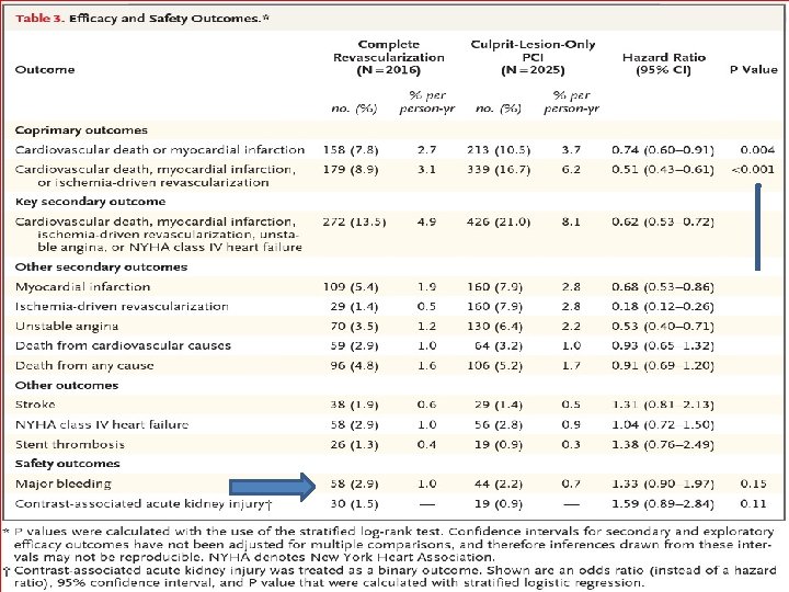 CONCLUSION Complete revascularization was associated with a reduction in cardiovascular death or MI. This was accomplished without an significant increase in major bleeding or contrast-induced nephropathy.