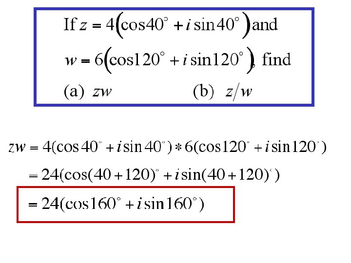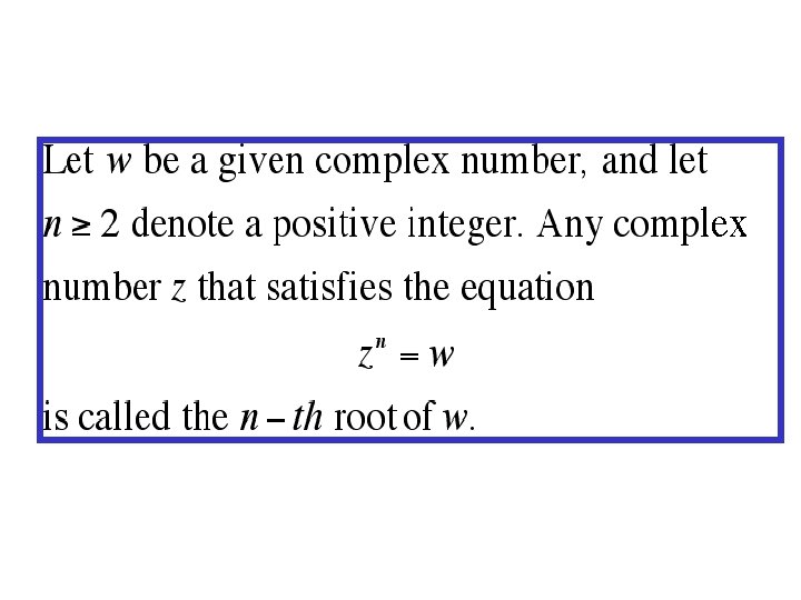 Example: Find the 4 th root of Change to polar form Apply De. Moivre’s Theorem