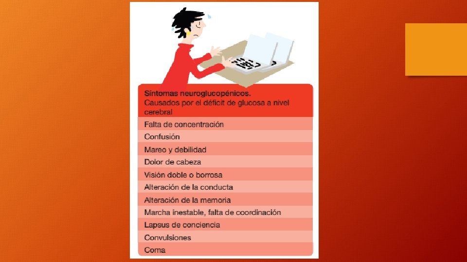 MANIFESTACIONES CLÍNICAS DE HIPOGLICEMIA Síntomas y signos son inespecíficos y dinámicos en su presentación. Manifestación con glicemias más bajas: Hipoglicemias recurrentes Manifestación con glicemias más altas: Control metabólico deficiente