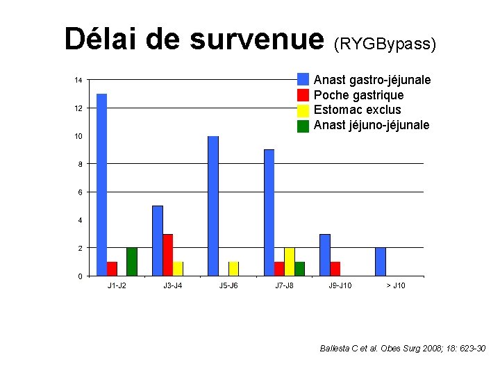 Délai de survenue (RYGBypass) Anast gastro-jéjunale Poche gastrique Estomac exclus Anast jéjuno-jéjunale Ballesta C et al. Obes Surg 2008; 18: 623 -30