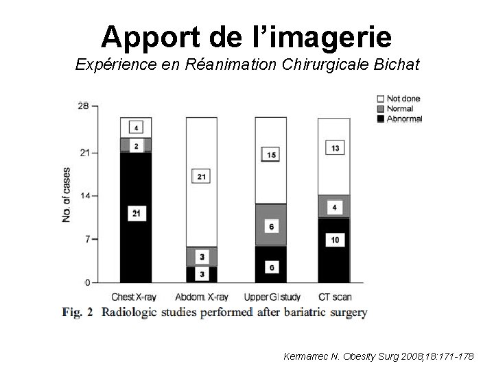 Apport de l’imagerie Expérience en Réanimation Chirurgicale Bichat Kermarrec N. Obesity Surg 2008; 18: 171 -178