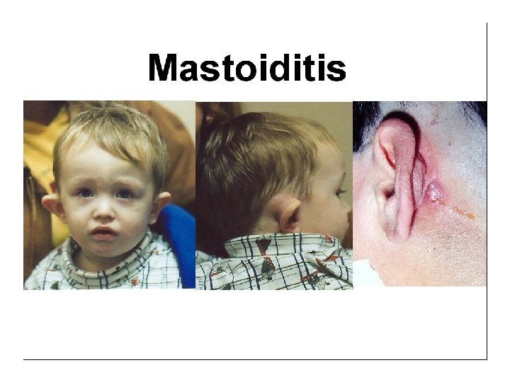 Facial Paralysis in AOM n Mostly due to pressure on a dehiscent nerve by inflammatory products n Usually is partial and sudden in onset n Treatment is by antibiotics and myringotomy