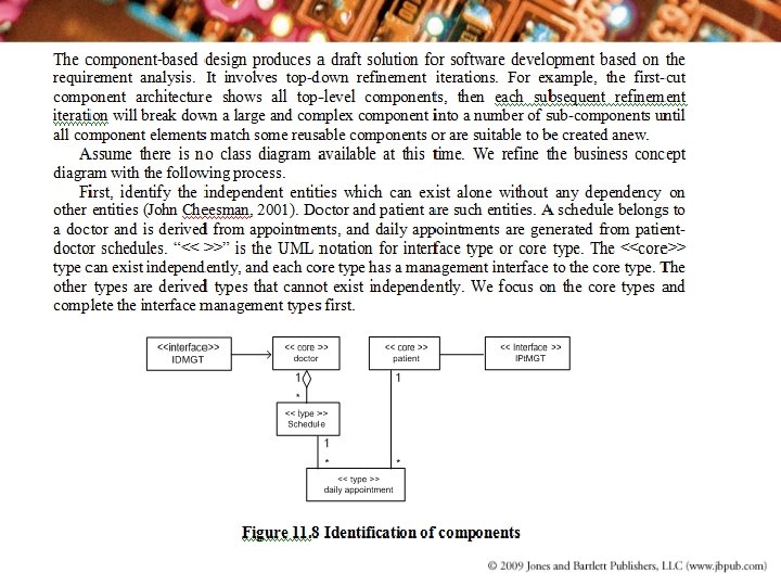 • We can recognize and discover these independent entities as new components. • The current component needs these provided services from these new discovered components. • In this way, we can also map the business concept diagrams to the required service interfaces of the first-cut component specification.