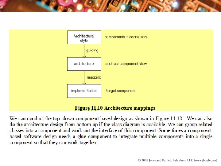 Component-Level Design Guidelines • We can map Use Case diagrams to the provided service interfaces of the first-cut component specification. • The business concept diagram depicts the relationships of the business process entities in the domain, we can extract these business process entities that can exist independently without any associated dependency on other entities.