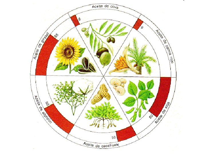LÍPIDOS SIMPLES • Elevada cantidad de energía. (triglicéridos) • Los alimentos mas comunes que tienen un alto contenido de grasas y aceite, son el sebo fundido, la oleomargarina, la manteca, la margarina, la grasa de cerdo, la crema de leche, los aceites vegetales ( Oliva, girasol, soja, maní, algodón, uva), etc. • El sebo se emplea para la fabricación de jabones y velas, y como lubricantes de cueros. • A la temperatura de 20° C, los aceites son líquidos y las grasas son sólidas.