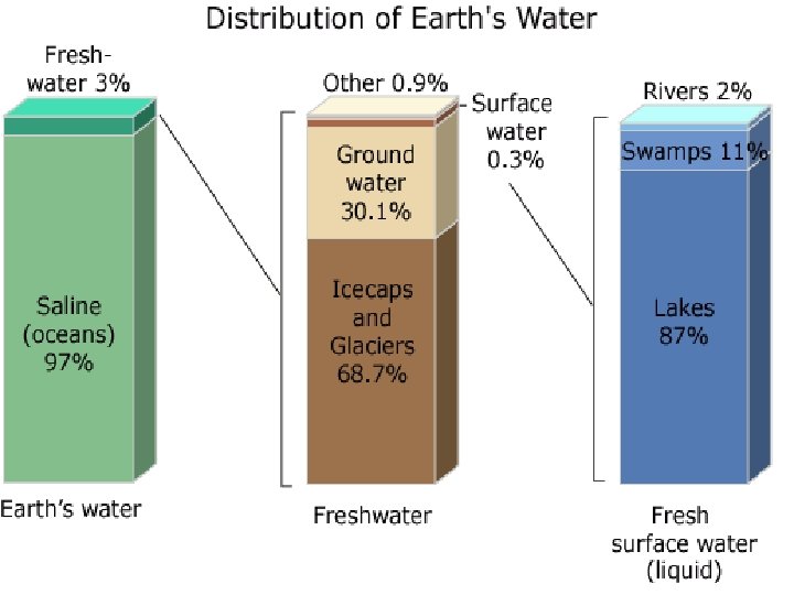 Includes all of the water on or near the Earth’s surface • Water; % Fresh? % Salt? % Ice? • Do you know?