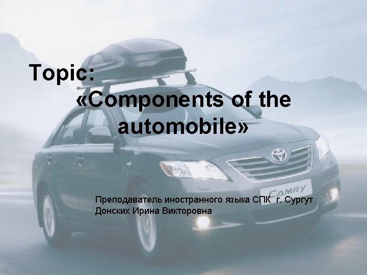COMPONENTS OF THE AUTOMOBILE Basically the automobile consists
