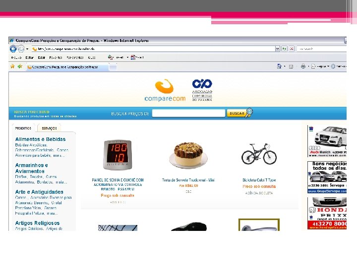 A Internet ampliou o poder de barganha do consumidor, ao possibilitar o surgimento de três poderosas ferramentas: 1 – a comparação instantânea de preços • Recorrendo à comparação instantânea de preços, obtémse maior transparência de mercado e o consumidor poderá verificar o preço do bem que deseja comprar em várias lojas digitais, simultaneamente, e escolher o menor preço disponível. • No Brasil, sites como Book. Miner (bookminer. com. br) e Compare. Com (comparecom. br) fazem isto para livros e eletrônicos, respectivamente.